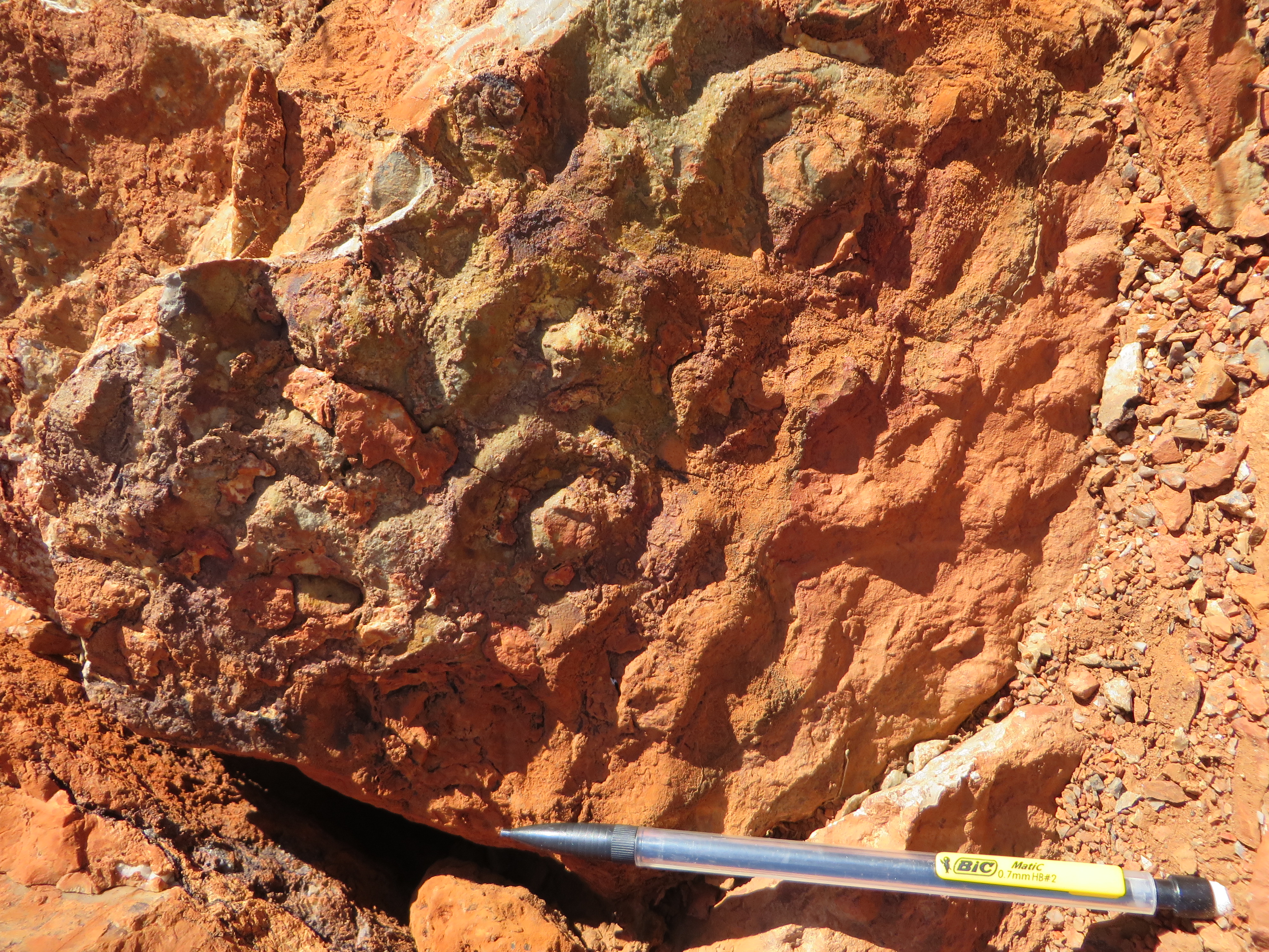 However, this team of University of New South Wales and University of Auckland geoscientists looked beyond the obvious and poured over Dresser rocks to take a closer look. This new discovery is special because it brings together evidence that the stromatolites and other purported microbial and features in the Dresser Formation evolved on land, within a volcanic caldera (Van Kranendonk et al., 2008). The key evidence for the presence of a paleo-geothermal system at the Earth’s surface is the recognition of geyserite, a silica-rich, densely layered and knobby or finger-like rock that forms only in the hot vent areas (~75-100 degrees Celsius) of terrestrial hot springs (Campbell et al., 2015a). Geyserite was found together with already known and newly discovered biosignatures in the Nature Communications article, which took a new look at a very old place. The rocks are deemed to have formed in or near river and lake sediments that hosted the ancient geothermal system, pushing back the geological record of hot springs by 3 billion years and the record of life on land by up to 580 million years. Now the new funding from the New Zealand Marsden Fund will allow drilling of these especially old hot springs to get at fresh samples about 70 m beneath the weathered, rusty red surface of the Australian Outback.