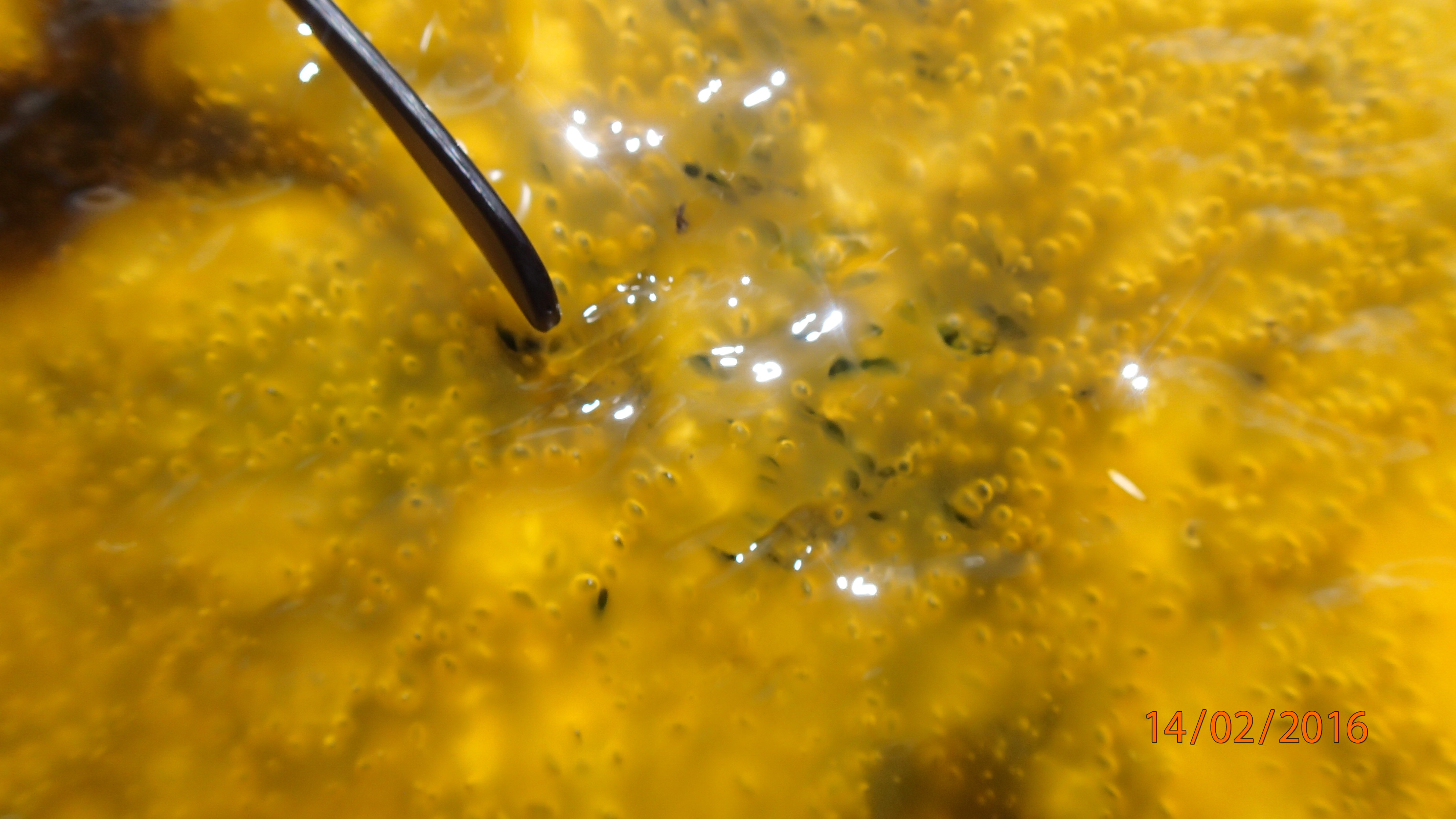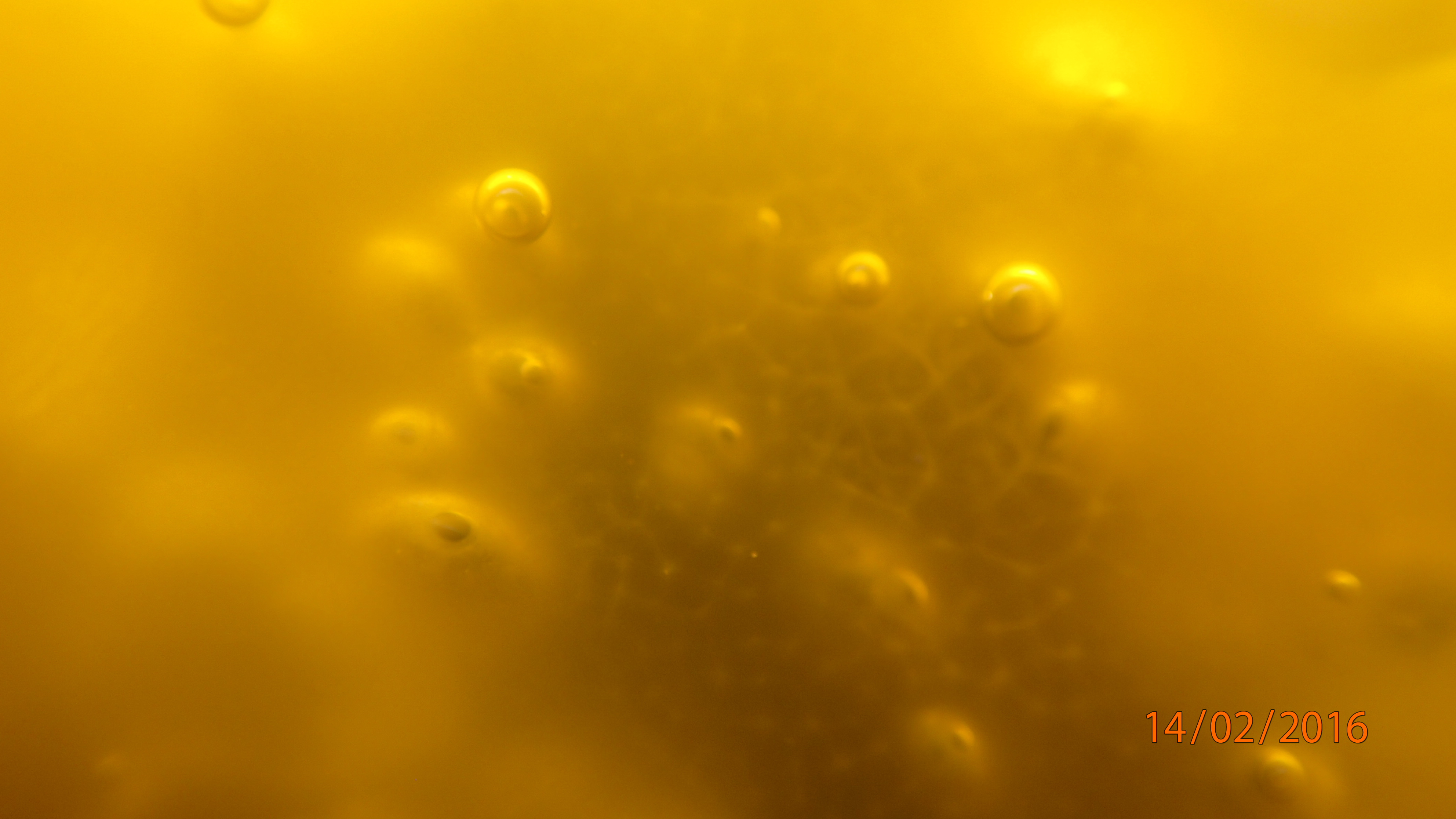 - Detail of oxygen bubbles trapped in cyanobacterial mats and their exuded EPS. Photo: T. Djokic.